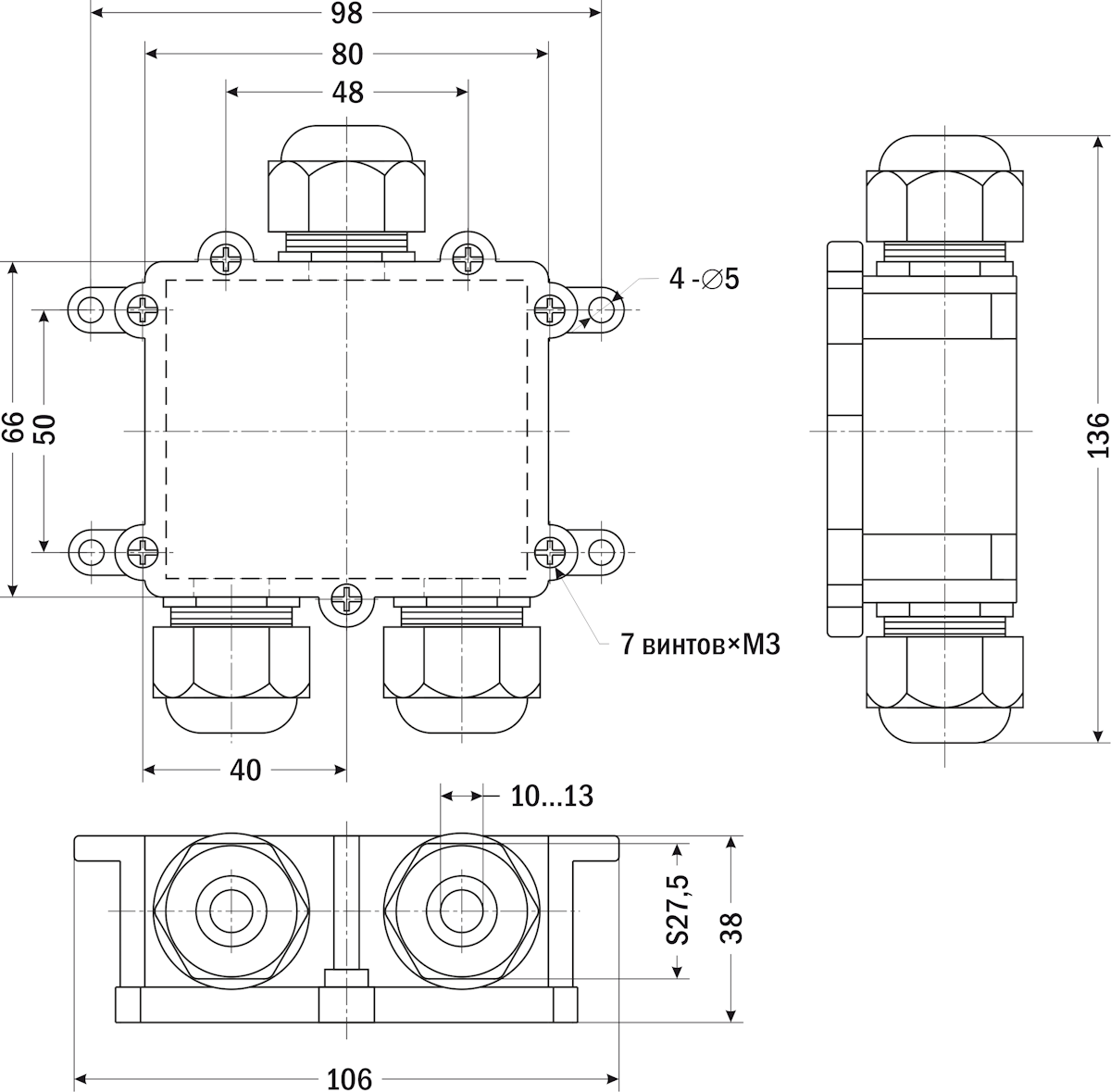 | Диаметр кабеля | 10...13 мм |